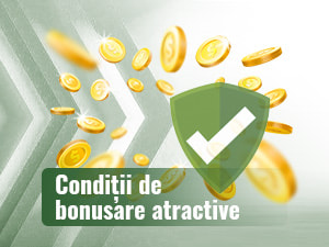 Termeni & Condiții se aplică 18+, doar pentru clienții noi, 100% până la 1.000 RON + 300 rotiri gratuite; depozit min. 25 RON; cerințe de pariere 35x (pariuri sportive 99x); 35x câștigurile din rotirile gratuite; valabilitate 30 zile. Rotirile gratuite se eliberează progresiv, 150 de rotiri gratuite nu au condiții de rulaj. Skrill, Neteller, TopPay și PaysafeCard nu participă la promoție. Jocurile Bingo, Skrill, Neteller, TopPay și PaysafeCard nu participă la promoție.