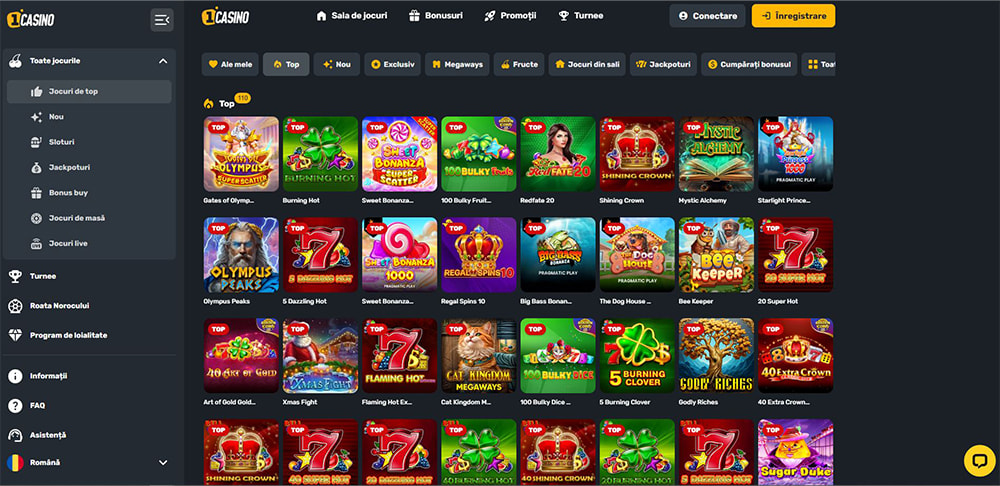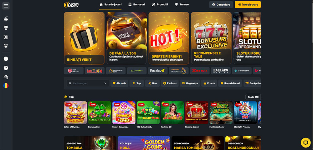 În zona de cazinou online ai o bibliotecă de peste 2.000 de sloturi, cu filtre ușor de folosit: sloturi noi, cu speciale, Megaways, exclusive, cu jackpot sau din săli. Poți sorta și după furnizor, ceea ce ajută mult când știi deja că vrei Pragmatic Play, NetEnt sau Amusnet și nu vrei să cauți manual.