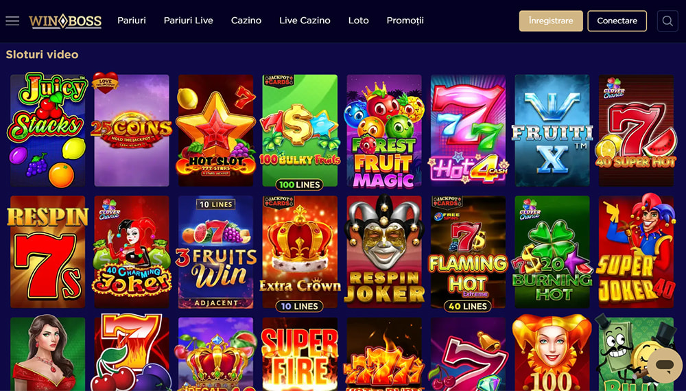 Site-ul WinBoss.ro este o platformă bine structurată, care, celor care au un cont de jucător, le pune la dispoziție varietate: o selecție foarte bună de sloturi, jocuri de masă RNG, jocuri interactive, jocuri cu dealer live, bingo, loto și o secțiune separată dedicată pariurilor sportive.